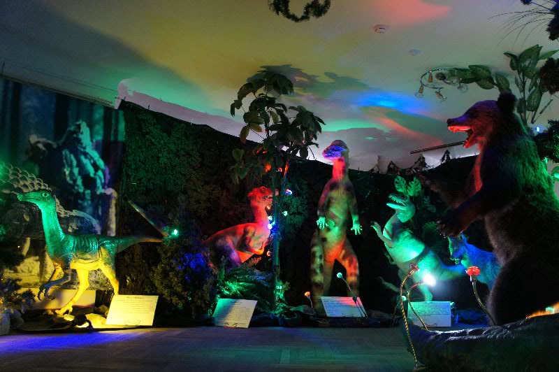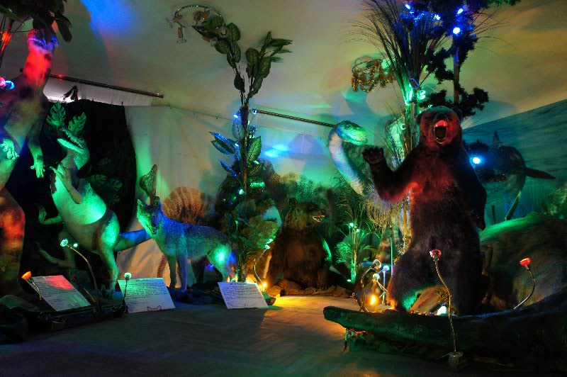 Предлагаем взрослым и детям выставку «ДРЕВНИЕ ЖИВОТНЫЕ» (рыбы, амфибии, динозавры, звери, птицы). На экспозиции представлены объемные и полноразмерные фигуры древних животных, а также чучела современных зверей и птиц.